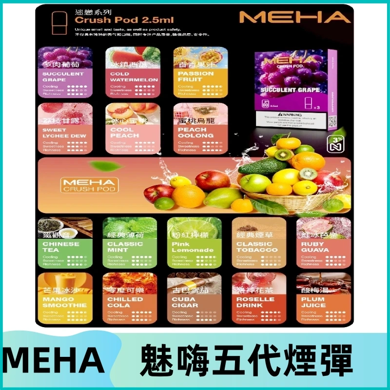 (限時活動:購買五盒MEHA魅嗨五代煙彈,贈送一隻MEHA五代方形主機)
